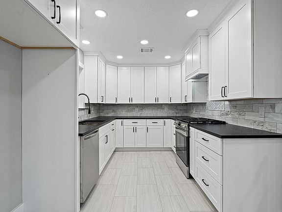 Leathered granite countertopsGorgeous trinity river viewsImpressive walk-in showerAmple kitchen cabinet storageAdditional full hallway bathroomStainless-steel gas slide-in rangePrimary suite