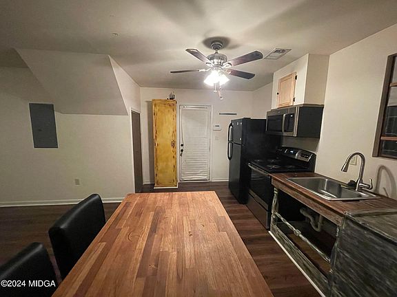 Step into the enchanting world of this charming tiny home, nestled within the heart of Forsyth, just a stone's throw away from the bustling Forsyth square. Perfectly positioned for those seeking the cozy allure of tiny home living without compromising on convenience or community, this gem epitomizes the essence of modern comfort and neighborly warmth. Built in 2014, long before the surge of tiny home popularity, this dwelling stands as the original Monroe County tiny home. Its quaint exterior beckons you to explore further, with a fenced in yard that invites memories of cool evenings spent around a firepit. Inside, every inch of space has been thoughtfully crafted to maximize functionality and style. From the snug sleeping loft to the efficient kitchenette and the inviting living area, each corner exudes a sense of intimacy and comfort.