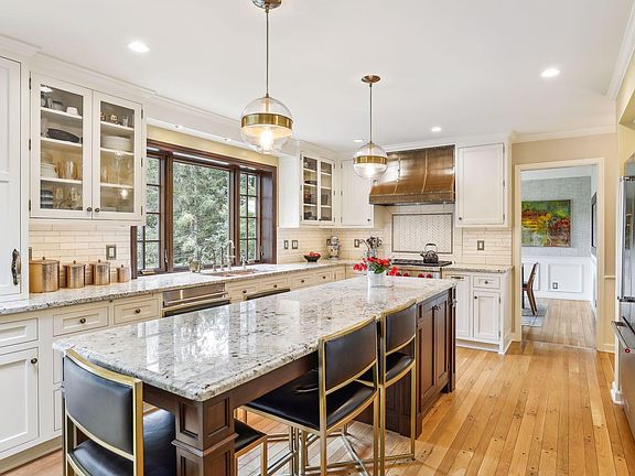 Welcome to this charming, stylishly updated 2 story home set on a quiet street, close to Mahtomedi schools, Dellwood and White Bear Yacht Club, 7 Vines Winery, biking, and walking trails. The 1-acre lot is magical and framed by trees for privacy, with wetland and filtered Long Lake views. This home is for the discerning buyer looking for high design and attention to detail. With 4 BR and 2 BA on the second level, the main floor boasts a major kitchen and family room remodel with architect-influenced luxury finishes. New custom kitchen with 9-foot granite island, Marvin windows, Wolf range, custom range hood and gas fireplace. The well-appointed home also includes an exercise room with steam sauna, hardwood floors, wainscot, main floor office, rec room and all updated bathrooms. See supplements for full list of updates. An incredible stone terrace spans the entire length of the home and flows to a lovely garden and backyard experience. A nature lover’s delight.