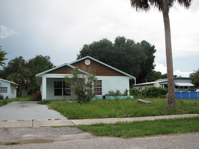 Exterior Features: Exterior: Single story blue and brown home is sitting on average sized lot, house has decent curb appeal, overall looks to be in good shape, no major physical damage present. Siding: Exterior wall is stucco/wood and seems to be in fair shape. Windows: a couple have been boarded. Soffits and Eaves: Intact. SF: (Lot) 6586. SF: (Home) 1551. Patio/Porch: Small covered concrete porch in rear of home and covered porch in front as well. Roof: Asphalt shingle; appears to be in fair condition. Driveway: Concrete. Interior Features: Interior: Is a duplex, each unit is a 1/1, both units look to be in good condition, floors could use some cleaning but rest of home looks good, overall seems in fair shape. Living Room: (1) White walls & wood trim, look to be in good shape, red carpet has some minor stains present, overall room looks fair (2) White walls have some blemishes in them, red carpet needs cleaning, isn’t in bad shape but will need some refinishing. Dining Room: None. Kitchen: (1) Tile floor is in good shape, blue walls, cabinets, sink, & appliances are intact, overall is in good condition (2) Tile floor looks ok, white walls, cabinets & sink are intact, appears to be in decent shape. Bathroom: (1) toilet, tub, & sink are intact, sink is coming out of counter, tile floor looks good, overall seems to be in fair shape (2) Tile floor is fine, toilet, tub, and sink are present, overall room is fair. Bedroom: (1) White/pink walls, red carpet, ceiling fan, closet space, looks to be in good condition (2) White walls, closet space, red carpet, looks to be in good condition. Basement: None. Mechanics: Hot water tank. Garage: None.