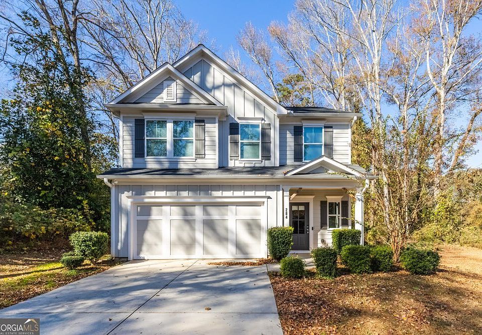 Modern board-and-batten sidingOpen floor planStainless steel appliancesGabled rooflinesSubway tile backsplashWhite quartz countertops