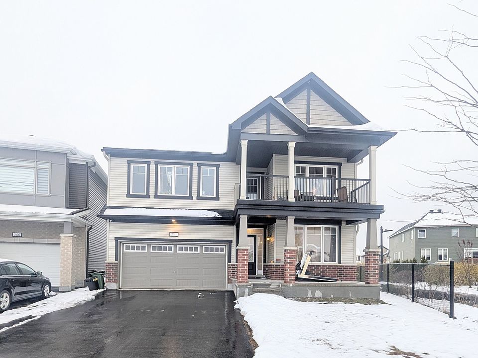 Unique 4 bedroom, 1 den, 2.5 bathroom detached home fronting an impeccable park in the prime Abbottsville Crossing neighbourhood of Stittsville! This beautifully designed home offering an impressive blend of style, comfort and functionality. The main floor showcases generous living spaces with high-quality engineered flooring, modern lighting and plenty of natural light. The layout includes a multi-purpose den, a formal dining room and a stunning open-concept area at the back of the home featuring the kitchen, eating area and a huge living room with a gas fireplace. The modern kitchen features massive counter space and island, upgraded cabinetry and exquisite stainless steel appliances. Upstairs, the spacious primary suite includes two walk-in closets and a bright 4-piece ensuite with separate soaker tub and standing shower. Three additional well-sized bedrooms, a charming reading nook, laundry room and a covered balcony with views of the park complete this level. Amazing Location - Close to great schools, transit, Trans Canada Trail, parks, shopping and much more!