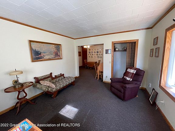 This could be a builders dream with potential for 4 more lots to build on, Or, have you own mini farmright in the village of Mulliken. Barn and shed have lots of storage and the oversized 2 car garage hasworkshop, wood stove and over head storage. Formal Living and Dining room, plus eat in kitchen. Firstfloor Primary Bedroom, and 1st floor laundry, where you could add a 2nd bath.