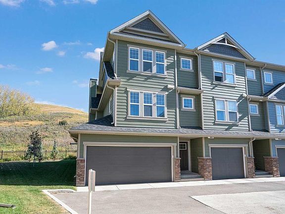 **Open House - Oct 24th 12p-3p, Oct 24th 5p-630p, Oct 25th 11a-1230p, Oct 26th 215p-345p** Welcome to your private oasis in the city! Nestled in the highly sought-after community of Cranston’s Riverstone, this 3-bedroom end-unit townhome backs directly onto expansive greenspace and the picturesque river valley escarpment. Beautifully finished with natural lighting galore, this turn-key home is ready for you to move in. The entryway opens to a fully developed lower level bedroom featuring warm cedar accents from top to bottom including the ceiling, a full bathroom, and a built-in Murphy bed with easy to control reading pot lights above. The basement bedroom has a full bath ensuite tastefully finished. Upstairs, the main level offers a bright and spacious living room, dining area, and a modern kitchen with upgraded appliances and a dedicated reverse osmosis water tap. A convenient half bath is also on this level, along with patio doors leading to your private deck and backyard retreat overlooking lush and stunning greenspace teeming with wildlife. The exclusive use backyard and deck is a very quiet and peaceful and tranquil place to relax. On the top floor, you’ll find in-suite laundry and two spacious primary suites, each with walk-in closets and private en-suite bathrooms. The rear primary bedroom boasts serene views of the escarpment. Large windows throughout the home, along with it being an end-unit, ensures plenty of natural light. The front facing primary bedroom is complemented by a spacious walk-in closet. Additional comforts of the unit include air conditioning for hot summer days, large oversized bedrooms, heated DOUBLE garage with epoxy flooring, quiet end-unit with additional windows and spacing from the next-door complex, epoxy floor garage, and a plethora of storage spaces. Cranston’s Riverstone offers unmatched natural beauty with abundant green spaces, walking paths, and direct access to the Bow River and pathway system. The neighbourhood is quiet and family-friendly, with no commercial traffic, upcoming pedestrian safety enhancements, and a convenient bus route nearby. Just minutes from Stoney and Deerfoot Trails, yet tucked away enough to enjoy peace and privacy, you’re also close to shops, schools, parks, playgrounds, and major amenities. This fully furnished townhome with outstanding finishes, incredible views, and an unbeatable. Don’t miss this chance to live in one of Calgary’s most prestigious communities in this amazingly quiet and peaceful townhome.