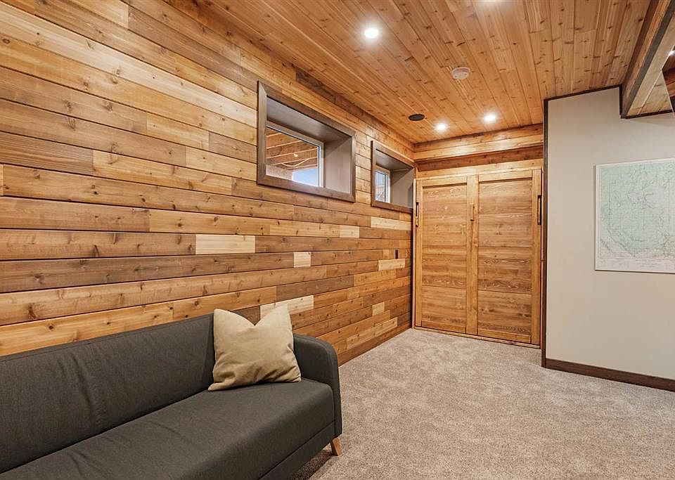 Expansive greenspaceRiver valley escarpmentNatural lightingWarm cedar accentsBuilt-in murphy bedModern kitchenUpgraded appliances