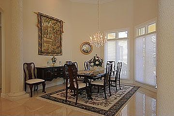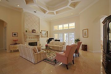 Completely upgraded and beautifully furnished, this comfortably elegant waterfront estate features a south-facing outdoor entertainment area and well-equipped yacht dock. Meticulous attention to detail is focused on both style and comfort in this Mediterranean-inspired estate facing south on a deep waterway in Boca Raton's famous Royal Palm Yacht & Country Club, one of the nation's most prestigious club communities. Completely upgraded with features including impact-glass windows, this understated elegant residence provides a well-planned single-level layout and is offered beautifully furnished throughout. Four bedrooms include a luxurious master suite with his and her baths. Waterside window walls brighten the open living areas and the master wing, all leading to covered and open patios by the pool and spa. The summer kitchen/bar makes this outdoor living space perfect for entertaining. Giving the yachter direct ocean access, a well-equipped dock completes the exclusive Royal Palm lifestyle. Location West Coconut Palm Road, Boca Raton, Florida. Boca Raton's prestigious signature address, Royal Palm Yacht & Country Club offers guard-gated seclusion in a premier location across from the landmark Boca Raton Resort & Club and the beach. Mizner Park's world-class shopping and dining are close by, and Boca Raton's private executive airport is only a 15± minute drive. Property Facing south on 100± feet of waterfront, this Mediterranean-style estate features a reinforced seawall and full-service private yacht dock. Screened/open loggias host outdoor entertaining with a summer kitchen/bar including a Viking gas grill. Marble lounge patios surround the glistening pool with spill-over spa. Residence Elegant details combine with beautiful furnishings in a total of 6,262± square feet including 4 bedrooms, 4½ baths, and a 3-bay garage. Special features include impact-glass windows and exterior doors, Crestron electronics, and a sophisticated security system. Mahogany double doors enter the marble foyer set off by Doric columns, with a powder room adjoining. Flowing openly, the living room soars to a coffered ceiling above the full-height cast stone fireplace and double-tiered window wall with French doors to the screened loggia. The open formal dining room is adjacent. The fully equipped gourmet kitchen includes custom cabinetry, granite counters, a cooking island, double ovens, and pantry. Warm hardwood floors flow from the kitchen into the open family/breakfast room with window walls along the poolside loggia. Custom built-ins include a full-service granite-topped wet bar. Off the foyer is an octagonal office/library. Adjacent is the grand master suite which features hardwood floors, a tray ceiling, and glass doors opening to the poolside loggia. Along with 2 custom-fitted wardrobe rooms, this luxurious suite offers 2 separate marble-finished baths, one with jetted tub and walk-in shower. In the opposite wing are 3 more bedrooms, 2 with en-suite baths and one with an adjacent bath that also serves the pool area.