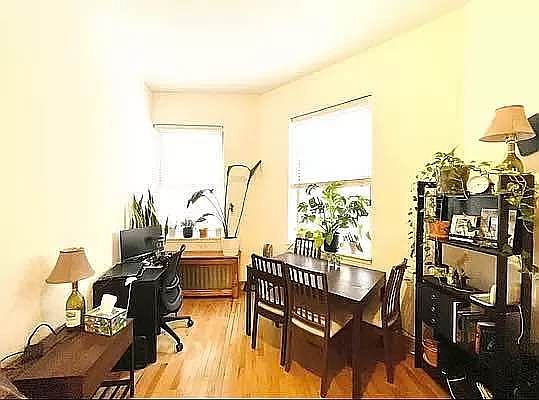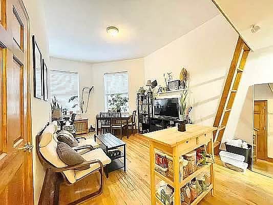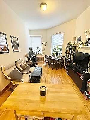 Welcome home to your renovated 1 bedroom apartment in an extremely well maintained building. Enjoy walking into a beautiful townhouse! This apartment features a spacious layout, high ceilings and great natural light. The extra large living room can easily accommodate 2 home offices, dining area and all your living room furniture. The kitchen features stainless steel appliances including a dishwasher and built in microwave. The bedroom fits a queen bed and additional furniture. Ample closet space including overhead storage. Beautiful renovated bathroom with a tub. Flawless hardwood floors throughout. 2 flight walkup.