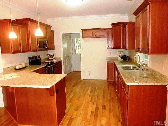 Custom Built 4BR w/open layout incl LR/KIT/DR w/hardwood flrs. Stylish KIT w/granite, cherry cabs, SS appls & pantry. MA w/trey ceiling, his/her WICs, dual sinks, soaking tub+tile. Sep Utility Rm w/tile. Nice Attic. 2 covered porches (back sould be screened). Lovely wooded AC w/private bkyard&creek on culdesac. Stone&hardiplank siding. EZ commutes+Low taxes Call for a showing now!