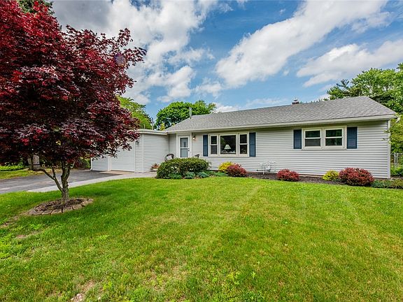 Welcome to 284 Woodruff Drive! This beautifully updated 3-bedroom, 1-bathroom Webster ranch is move-in ready and waiting for its new owners. You'll be greeted by stunning curb appeal, featuring a stamped concrete walkway that leads you inside. Step into a spacious living room ideal for entertaining, complete with a cozy gas fireplace and gleaming original hardwood floors that flow throughout most the home. You’re going to fall in love with the fully remodeled kitchen—featuring gorgeous granite countertops, brand-new appliances, stylish cabinetry, and fresh flooring—flowing seamlessly into the formal dining room for easy everyday living or special gatherings. Stay comfortable year-round with central A/C and energy-efficient vinyl windows. The updated bathroom adds a fresh, modern touch. Extra living space is in the partially finished basement which has the opportunity to finish more. The attached garage offers extra space, perfect for a workshop or additional storage. Outside, enjoy the large, fully fenced backyard and patio—ideal for summer gatherings, pets, or play. Don’t miss your chance to call this charming home yours! Delayed Negotiations June 24th 2025 @2PM
