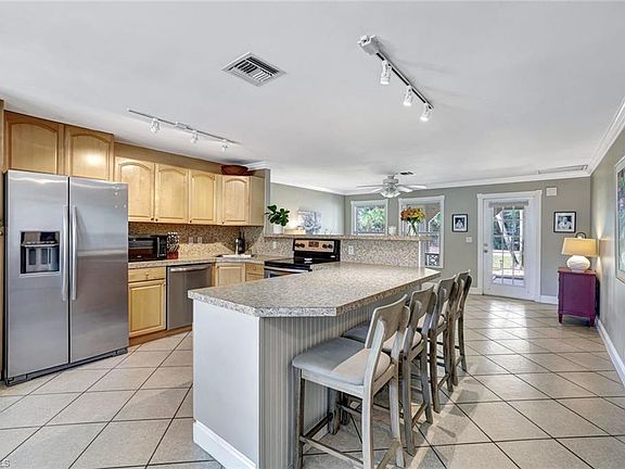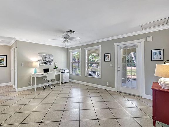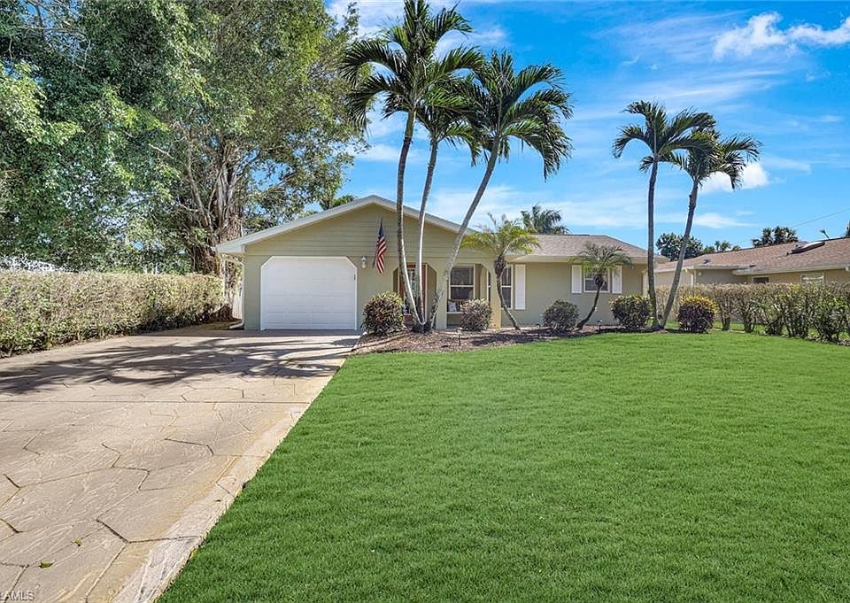 Discover the Southwest Florida lifestyle from the comfort of this inviting Naples home. Ideally situated just minutes from downtown, world-class dining, and some of the area’s most pristine beaches, this home offers both convenience and coastal charm. The property features a refreshing swimming pool and an expansive backyard, perfect for outdoor entertaining or creating your own private oasis. An extra-long driveway provides added convenience, while the beautifully landscaped front yard, accented with tropical palm trees, enhances the home’s welcoming curb appeal. Inside, the open floor plan is designed for comfort and versatility, ideal for both everyday living and hosting guests. Featuring custom crown molding, tile flooring throughout, and a well-appointed kitchen complete with stainless steel appliances, wood cabinetry, a breakfast bar, and flexible counter space. Enjoy having no HOA restrictions, a roof that was updated approximately six years ago, and a private well for irrigation. CCPS shows highly rated schools. This home presents an exceptional opportunity to enjoy Naples living at an affordable price. Imagine the possibilities!