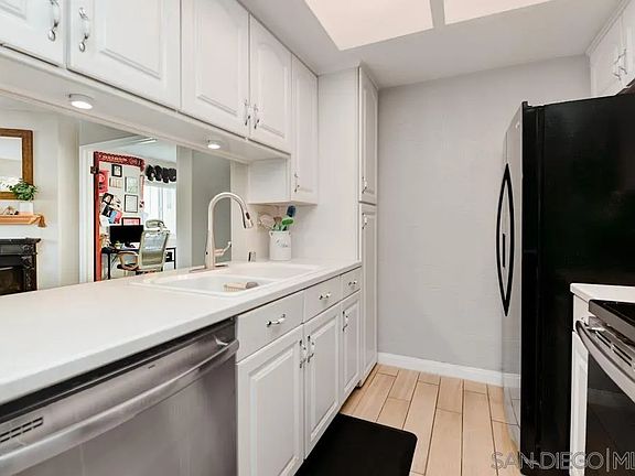 Hidden in the old world charm district of Golden Hill in San Diego this is your gateway to one of the most sought after neighborhoods surrounding the famous Balboa Park. Located on the ground level with two bedrooms and one bath, this condo is packed with value including a fully equipped kitchen, in home washer and dryer, central air conditioning and heating, a fireplace and more. Several appliances have been recently upgraded. The spacious primary bedroom features dual split closets plus bathroom access from both the bedroom and hallway. Gated entry and a reserved parking space. Golden Hill is known for it's architecturally eclectic community filled with beautiful historic homes where you will feel taken back in time. Steps away from restaurants, cafes and grocery stores. Just a 16 minute walk to our neighbors in famed South Park, 2 miles from Downtown San Diego and a 12 minute drive to the beach. This opportunity can be a spectacular find for a first time buyer or investor looking to break into the San Diego market. Condos like these don't come up very often, grab it while you can!