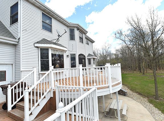 You CAN have it All! Very spacious,well maintained 4-5 bedroom,3.5 bath home-full/finished walk-out lower level on a beautiful 1.9 acre wooded,bluffed lot.Wrap-around porches,tiered decking,&patio.3 car heated garage.30''x45'' steel out building-lofted.Dramatic ceilings,hardwd floors,oak doors,open kitchen-family area,seperate living,dining, & private office.2nd floor laundry.22''x17''walk-in attic.Milton Pope/Seneca sch