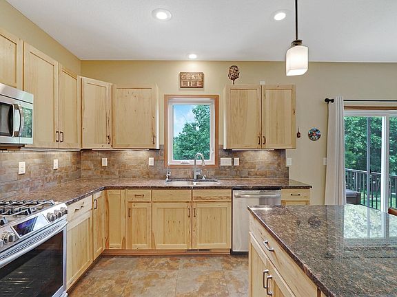 Nestled in Prior Lake, this exquisite 2-story home offers unparalleled views of Spring Lake Park. Custom tile finishes, hickory cabinets, and granite countertops adorn the main level, while a deck overlooks the park. Upstairs, find three bedrooms, a loft, and a laundry room. The lower level boasts a guest suite, spacious living area with a gas fireplace, and a flex space for entertainment or hobbies. New roof, furnace, water heater, and carpet ensure move-in readiness. Whole House Water Filtration system was installed recentlly. New blue spruces and apple trees create extra privacy in the backyard. Conveniently located near shops, restaurants, and the lake, this home invites you to experience luxury living amidst natural beauty. Welcome home. Check out VIRTUAL TOUR!