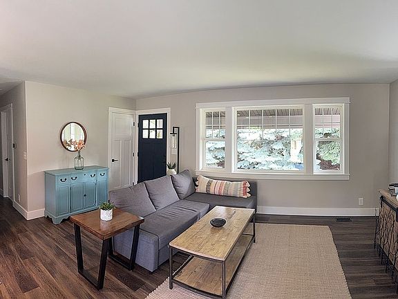 .31 Corner lot with mature trees provide privacy and seclusion. Complete remodel in 2018. Custom cabinets with quartz countertops, including tile and marble bathrooms. New concrete board siding and windows, metal roof installed in 2021. Upgraded electrical and plumbing with expanded laundry room. High end Trane natural gas heat with central air. Rock landscaping and Trex front deck with concrete patio in back. Auto sprinklers on lawn, drip lines around all landscaping. This home is very efficient and requires low maintenance. Very clean and gently lived in, move in ready.
