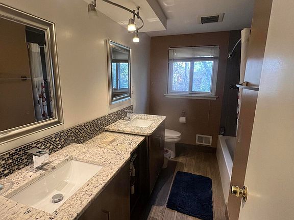 This spacious 4 bedroom, 2 full bath, 2 half-bath home is an outstanding opportunity to gain instant equity in a prime location, situated just minutes from all major freeways and top schools. The solid foundation is ready for your special touches and updates, allowing you to truly make this house your home. The kitchen already boasts desirable granite countertops and tons of storage, and the property features a highly versatile finished basement complete with a half bath and a built-in bar, perfect for a dedicated home office, play area, or entertainment space/man cave. Outside, you'll find a great fenced-in backyard (trampoline included!) ready for family fun. Bring your creativity and vision—