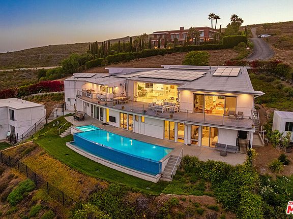 Architectural estate with pool and ocean views in Malibu, masterfully completed in 2019. This stunning 5-bedroom, 5.5-bathroom main residence offers 4,400 sq.ft. of luxurious living space, complemented by a permitted detached guest house boasting an additional 1,200 sq.ft. with 3 bedrooms and 2.5 bathrooms, perfect for hosting family and friends or as an inspiring workspace. Perched to capture breathtaking ocean and hillside views stretching from the Queen's Necklace along Santa Monica Bay to the distant Channel Islands, this home's design and craftsmanship are unmatched. Viking appliances, custom-made cabinetry, quartz countertops, ceramic tiles imported from Spain, and Canadian maple hardwood floors define the sleek and modern interior. German Duravit toilets and seamless finishes further elevate the home's refined style. This property is fully solar-powered, featuring back-up Tesla batteries to ensure uninterrupted power and wifi connectivity, a must in Malibu's dynamic coastal climate. Entertain in style on the expansive 1,300 sq.ft. ocean view deck with an outdoor kitchen BBQ, or unwind by the natural gas-heated infinity pool and spa, complete with a surrounding sundeck and lush lawned backyard. Families will delight in the dedicated children's play area. Ample on-site parking and a 2-car garage with built-in storage ensure convenience for all. Ideally located with easy access to Paradise Cove Beach, Point Dume Market, and shops, and nearby top-rated schools, this architectural gem blends privacy, luxury, and functionality in one of Malibu's most coveted locations. Can be leased unfurnished for $24k per mo. or $27,000 per month furnished.