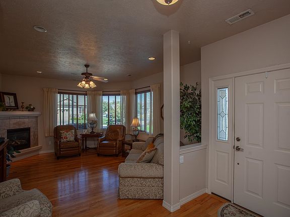 Beautiful Townhome, well cared for located in the Garden Grove Community. This home was the model home with high end upgrades, oak flooring, oak cabinets. spacious kitchen with all appliances. The eat in kitchen would serve well as a formal dining area too. The large living room offers a gas fireplace and lots of windows. The primary bedrooms has a walk in closet as well as an exterior door to sit outside and enjoy your private patio. This home is a perfect lock and leave property as the HOA takes care of the exterior maintenance and landscaping. Come make this townhome yours!