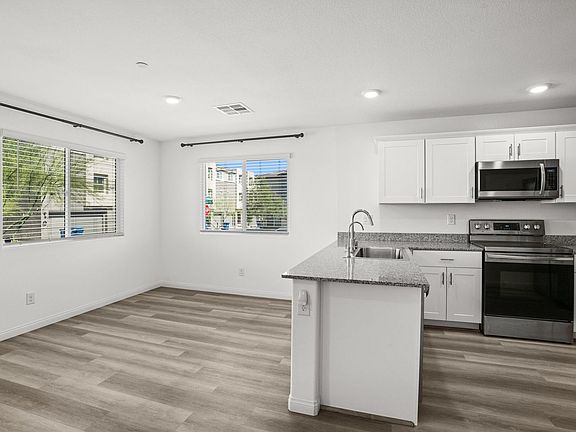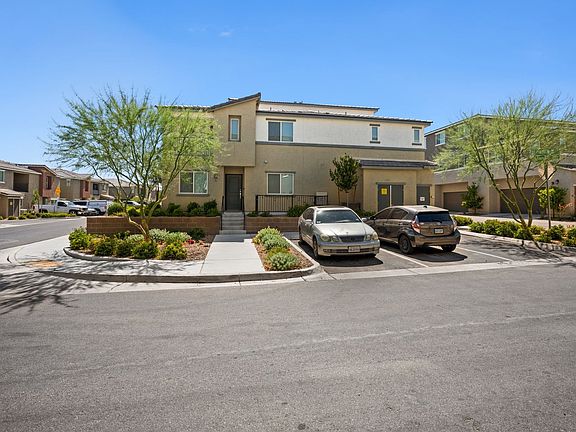This townhome is a modern exemplification of suburban living, tailored for those seeking a blend of comfort, convenience, and efficiency in Las Vegas, NV. Constructed in 2020, this residence offers a fresh and contemporary living experience, complete with a whole house fan cooling system, ensuring a comfortable environment throughout Nevada's warm climate. Upon entering, you are welcomed into a spacious open-plan living area that seamlessly unites the lounge, dining, and kitchen spaces. The kitchen is a modern chef's delight, featuring sleek white cabinetry, stainless steel appliances, and generous countertops that provide ample prep space. Community amenities stand out as a crowning feature, highlighting a resort-style pool, vibrant playground, and a basketball court. The location boasts proximity to I-15 providing ease of access to the pulse of Las Vegas. Coupled with nearby shopping, dining, and entertainment options, residents can enjoy the conveniences urban life has to offer.