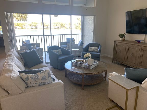 This view could be yours for 2025. Renting from April through October. It's a North Naples 2 bedroom, lakefront carriage home with wonderful community amenities. We have a walking path, 2 pools, tennis courts, pickleball courts, children's playground, bocce, whirlpool, clubhouse and workout room in this lovely gated community just minutes from the beach and the Mercato. There is a huge variety of shopping and restaurants nearby. Surround yourself with beauty on one of the largest lakes in Naples! Per HOA rules, no pets are allowed, and we request no smoking.