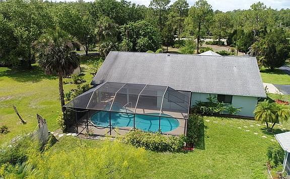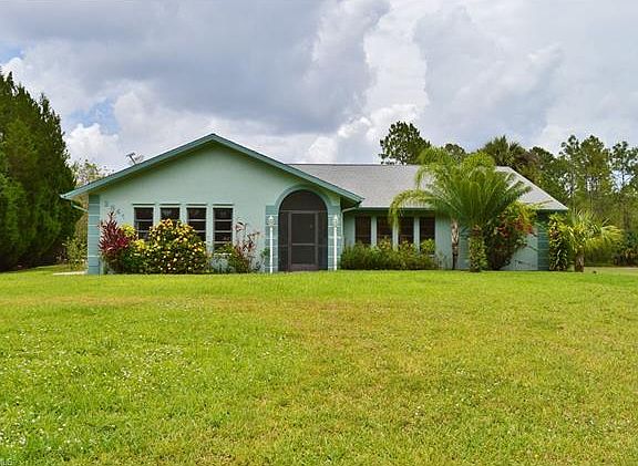 Enjoy the lovely lifestyle of Golden Gate Estates with no HOA fees! This gorgeous 3 bedroom 2 bath pool home with side entry 2 car garage along with a 1 bedroom + den, 1 bath guest house with its own washer and dryer as well as separate septic. Perfectly situated on 2.27 acres. Spacious kitchen with beautiful cabinetry, granite counter tops and separate dining area is ideal for family dining or entertaining. Tastefully upgraded master bedroom and master bath features stunning marble flooring as well as stylish dual sinks and shower. The 1 bedroom/1 bath guest house is light, bright and spacious with attractive accents. Roomy, covered patio embraces the beauty of the pool and serene acreage setting. Large, manicured yard has a storage shed for storing all your outdoor equipment. Excellent location close to I-75, shopping, dining and entertainment. Must see to appreciate the impeccable maintenance of the gem. Recently painted on the inside.