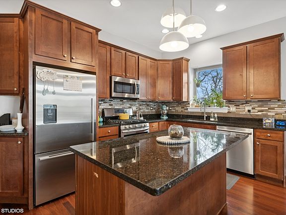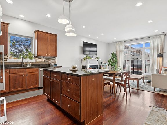 Step into this roomy 3-bedroom, 2-bathroom condo in a charming boutique elevator building in Avondale. The expansive living and dining area features a cozy fireplace and gleaming hardwood floors, which lead to a front balcony. The stylish open kitchen is a chef's dream, complete with an island, granite countertops, a backsplash, and stainless steel appliances. Hardwood floors continue throughout the unit. The master suite boasts a luxurious bath with a double vanity, a walk-in closet, and access to a spacious rear deck. The unit also includes in-unit laundry, with a parking space included. Conveniently located near public transportation and only one block from Kosciusko Park.