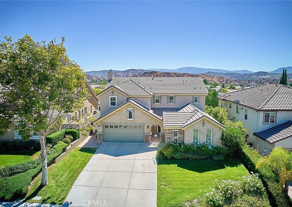 SUPER CLEAN. Stunning 4 Bedroom+1 Loft, with Mountain Views & Exceptional Layout. Welcome to your dream home in the esteemed Estrella Vista community of Santa Clarita! This meticulously maintained 3,011 sq. ft. residence is situated just north of Copperhill Drive in one of the most peaceful, safe, and sought-after neighborhoods. Built in 2002, this gem of a home offers an incredibly attractive and functional floor plan. Enjoy engineered hardwood floors in common areas, new carpeting in all bedrooms, and custom paint and molding throughout—including crown molding in the living room and dining room, window casings and chair rail details, and upgraded bathroom faucets.