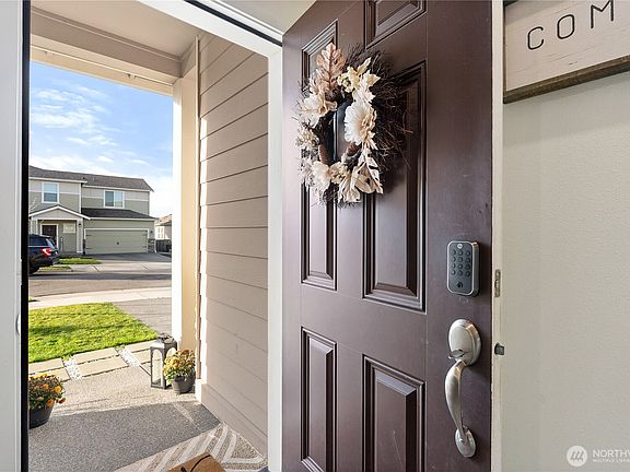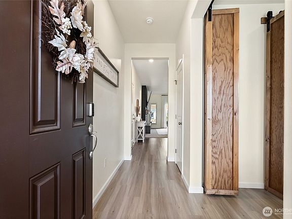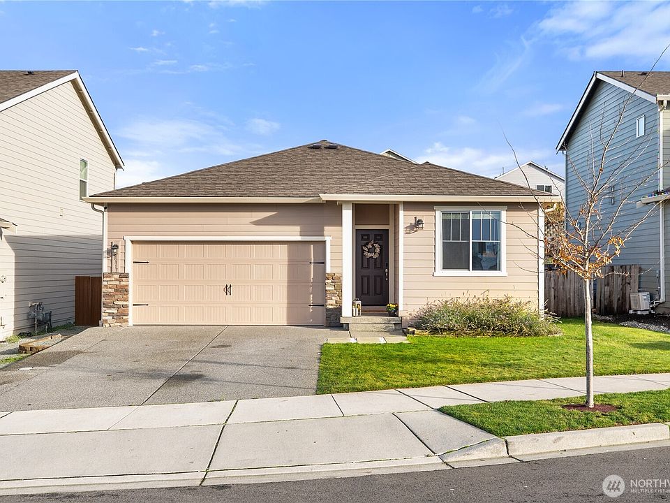 Enjoy cozy, modern living in this 3-bed, 2-bath rambler in Cedar Hill Estates, a sought-after Stanwood neighborhood. The living room with electric fireplace and custom mantle flows into the kitchen with granite countertops, plenty of cabinet space, and counter seating—perfect for casual meals or entertaining. Down the hall, a utility room with washer and dryer, a full bath, and two additional bedrooms provide convenience and space. The primary suite is a relaxing retreat with walk-in closet and private full bath, while a flex room with barn doors can serve as a dining space, office, or playroom. You'll love the slider off living room to patio and fully fenced + spacious backyard. Close to schools, shopping, and parks. WELCOME HOME!