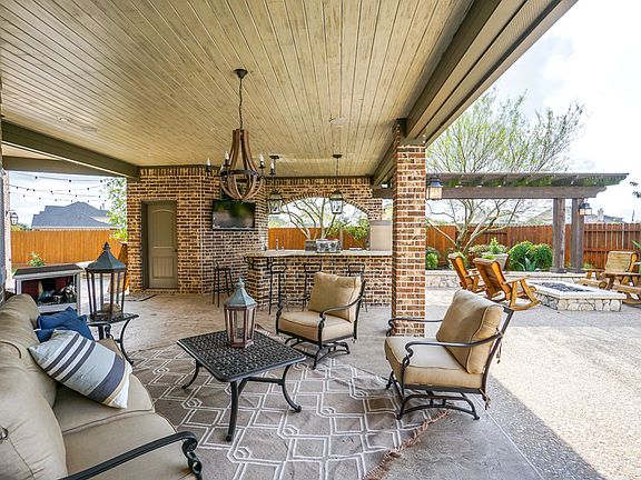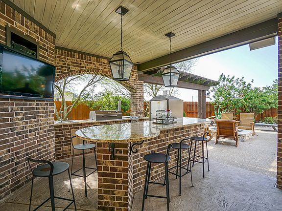 - Exterior: Back Yard Fenced, Covered Patio/Deck, Sprinkler System, Subdivision Tennis Court, Spa/Hot Tub, Back Yard, Outdoor Kitchen, Outdoor Fireplace, Workshop