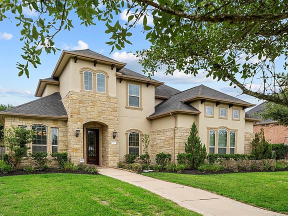 Magnificently designed executive level home on an Estate lot in Firethorne. This customized Coventry home features 5 full bedrooms, Primary & a guest suite on the first floor with a private bath, 4 full/1 half baths total, work from home office, wine/bar area with stone and metal gate, formal Dining, Family Rm. w/ fireplace & stunning wall of windows overlooking the large rear covered patio and 100' wide backyard. Dream kitchen boasts SS appliances, including built in oven and microwave & 5 burner cooktop, 42'' custom cabinetry & butlers pantry. Dramatic 2 story entryway w/sweeping staircase. Upstairs has 3 large bedrooms, generous game room & media room. The large Master Suite makes this home a complete masterpiece. Abundant light & high end finishes throughout. Rear yard w/ ample grass area and room for a pool & spa, all overlooked by large covered patio. Don't forget about the 4 car attached garage and extra long driveway for parking. Make it a priority to see in person.