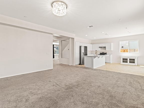 This stunning two-story beauty blends modern style, energy efficiency, and open-concept living in a sought-after neighborhood. With solar panels already in place, enjoy lower energy bills and long-term savings. Inside, you'll find a bright and spacious layout featuring plush new carpet, recessed lighting, and neutral tones throughout. The upgraded kitchen shines with white cabinetry, quartz counters, a large island, stainless steel appliances, and a sleek gold-tone faucet—perfect for daily life or entertaining guests.