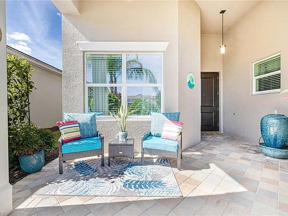 Welcome to this beautifully enhanced Tribeca floor plan in the highly sought-after 55+ community of Valencia Bonita, where more than $70,000 in thoughtful upgrades elevate everyday living. Offering over 2,200 square feet of stylish comfort, this residence showcases easy-maintenance tile flooring in the main living areas, plush carpeting in the bedrooms, designer lighting, and crown molding throughout. The kitchen is a true highlight, featuring abundant white cabinetry, quartz countertops, energy-efficient stainless-steel appliances, a gas cooktop, and a generous breakfast bar complemented by a separate formal dining area—ideal for everyday meals or hosting guests. A pavered driveway and welcoming entryway lead into a layout that includes 3 spacious bedrooms, 2 full baths plus a powder room, a versatile den, and an inviting great room. Step onto the screened, covered lanai to embrace effortless Florida lifestyle living, with serene lake views and unforgettable western sunsets creating a picturesque backdrop for outdoor relaxation. The owner’s suite offers a peaceful retreat complete with a seamless glass shower and elevated finishes. Beyond the home, Valencia Bonita gives residents access to a remarkable 10-acre amenity campus centered around an impressive clubhouse, where you’ll find multiple pools—including a resort-style pool, a lap pool, and a resistance pool—along with tennis, pickleball, bocce, a dog park, fire pit, and a pro shop. Inside, enjoy a grand ballroom for performances and social events, a fully equipped fitness center, spa with treatment rooms and a nail salon, indoor and outdoor dining at the on-site restaurant and bars, card rooms, a sports lounge, arts and crafts spaces, yoga and exercise studios, ping-pong, massage rooms, and so much more. This exceptional home blends a beautifully upgraded private retreat with direct access to one of Southwest Florida’s most vibrant active-adult lifestyles.