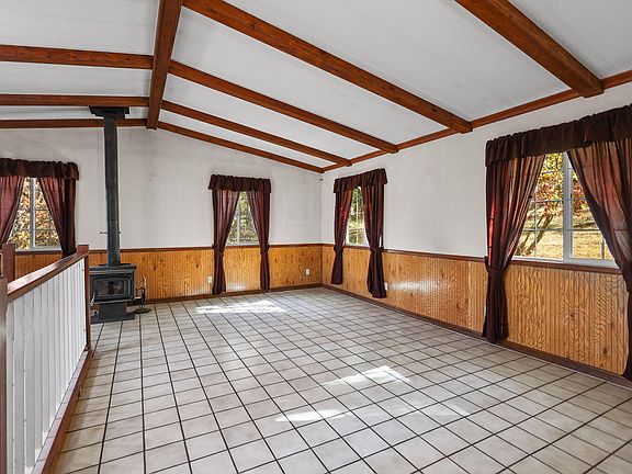 Detached shopQuiet home on acreagePrivacy and pine treesNewer roofCozy wood stoveSeparate dining room