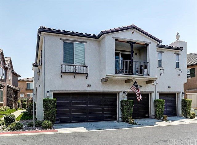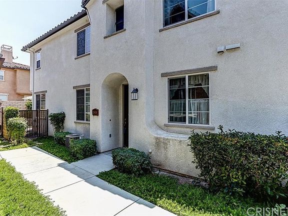 The Mariposa's are one of the most popular townhomes in Santa Clarita! Lowest HOA, no Mello-Roos, Easy commuter access! This one, the rarest of floor plans, offers a perfect sized back yard & side-by-side 2 car direct access garage! Beautiful newly installed wood-like flooring brings you to huge open space including dining area, living room with fireplace, pre-wired for surround sound, open to kitchen too! This unit had builder upgraded cabinetry throughout & a gorgeous wrought iron staircase! Kitchen offers ample room, custom tile flooring, views of who's coming to your front door, breakfast bar, w/ large pantry off to side! Indoor laundry & powder room finish off the first floor. Heading up your wrought iron stair case, note newly installed carpeting, reach the landing w/ upgraded cabinetry for linen storage. Two large 2ndary bedrooms, note how much furniture fits there, good sized 2ndary full bath....and then...waaaaay down the hall....hits the large master suite with his/hers closets, dual sink vanity, glass enclosed shower/tub combo. You can peek into your rear yard from here to check on the kiddos/puppies too! That rear yard with the stamped concrete patio, flagstone raised planter bed, & grass play area as well! Yep, this is your next home!