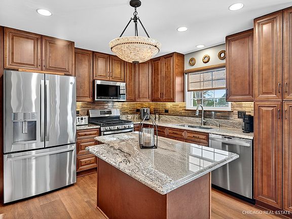 Welcome to this beautifully updated 2700 SF (including basement) home where all the big-ticket items have already been taken care of for you. Step inside to find new flooring (2023), upgraded maple trim and doors (2023), and a fully remodeled kitchen (2022) featuring refreshed cabinets, modern countertops, and premium GE Profile appliances (2022). Upstairs, enjoy the luxury of two remodeled bathrooms (2023) and spacious bedrooms with updated maple trim and doors. Natural light fills the home through double-hung windows (2022) and brand-new sliding patio doors with built-in blinds (2024), opening to the backyard for easy indoor-outdoor living. Outside, the attached garage features a 2024 concrete floor coating, creating a clean, durable, and functional space for vehicles, storage, or hobbies. Newer fence around the backyard with a 7x8 shed. Enjoy the finished basement with new laundry room featuring washer/dryer on pedestals (2024) and beautiful handcrafted bar for entertaining. Major mechanicals and structural upgrades offer unbeatable value: * Roof & insulation (2024) * HVAC with humidifier (2023) * Security front door (2022) This home has been meticulously maintained and thoughtfully improved from top to bottom-perfect for buyers looking for move-in ready living with all the upgrades already done. It's the perfect combination of modern updates, practical improvements, and inviting spaces-truly move-in ready!