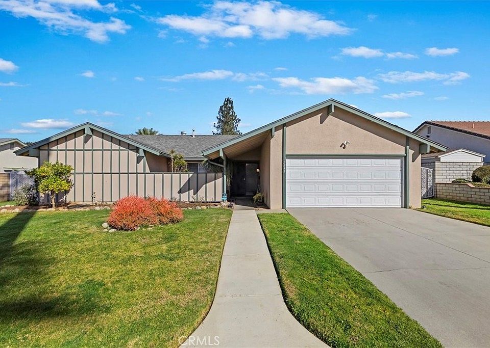 Welcome to this beautifully updated 4-bedroom, 1.75-bathroom ranch-style home situated in Riverside's desirable neighborhood. Boasting 2,198 sq. ft. of living space on a spacious 8,712 sq. ft. lot, this home offers a harmonious blend of modern upgrades and timeless charm. Step into the remodeled kitchen, featuring Corian countertops, soft-close cabinets with pull-out shelving, a double oven, and a 4-burner stove. The adjacent dining room is complete with a ceiling fan for added comfort. The expansive living room captivates with vaulted ceilings, a cozy fireplace, and a sliding glass door that leads to the backyard oasis. An oversized family room with vaulted ceilings, custom built-in shelving, and a convenient pass-through serving area from the kitchen adds versatile space, perfect for entertaining or relaxing. The primary suite delights with a corner closet, vanity area, and a remodeled bathroom showcasing dual sinks and a decorative tiled shower. Additional three bedrooms include one with a ceiling fan and another that can double as a home office. Outside, enjoy the stamped concrete patio, raised flower beds, and a variety of citrus, avocado, and fruit trees. The backyard also features block walls, wrought iron, and wood fencing for privacy. When you arrive at the front serene courtyard, you will be welcomed inside this home. It won't last, so don't wait! This move-in-ready home combines functionality, beauty, and comfort. Schedule your private showing today!
