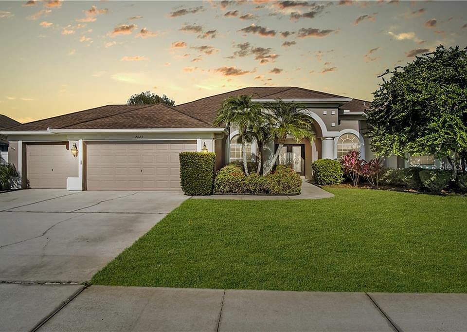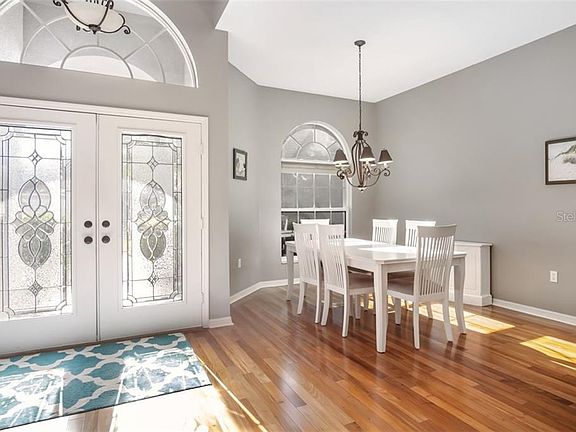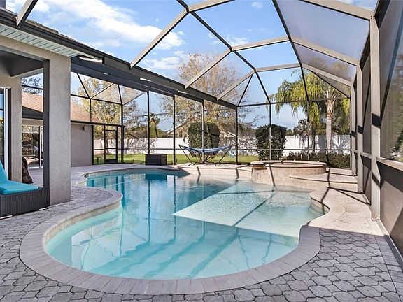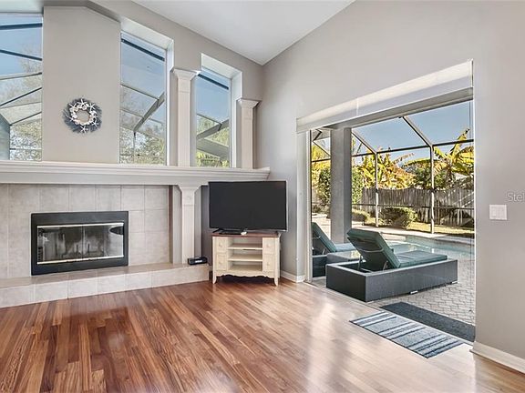Your own private oasis! Picture perfect POOL home that offers 4 bedrooms with potential 5th bedroom, 3 full baths, over 3,000 square feet and a spacious 3 car garage. The mature landscaping welcomes you into the formal dining room with hardwood floors, transom windows, chandelier and soaring ceilings. The formal living room has hardwood floors and view of screened lanai. The kitchen is a dream with granite counter tops, high ceilings, custom tile backsplash, stainless appliances, solid wood cabinets, planning desk area, center island and large snackbar; perfect for entertaining and family gatherings. The family room is light and bright with transom windows, hardwood floors, cozy wood burning fireplace, vaulted ceiling and glass pocket doors to the lanai. The study/den has french doors and is a perfect space for studying or a home office. The master bedroom has a private access to the lanai, wood floors, transom window, ceiling fan and private bath that features a double sink vanity, large soaking tub and glass enclosed separate shower. Spacious laundry room with utility sink and custom storage cabinets. You'll enjoy your morning coffee in the private lanai with a view of the sparkling salt-water pool & spa and mature trees. Brick paved lanai and fenced-in yard are great for enjoying those summer cook-outs and other outdoor activities. Other great features of this great home include Enormous 5th bedroom with lanai access, brand new water heater, new a/c with air purifier. Beautiful scenic views!