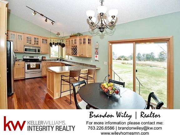 This BEAUTIFUL Zimmerman Home features Remarkable quality throughout, full Wet Bar with refrigerator, spacious entry way, Custom made Built ins, and Large windows in living room and on front door, great for natural lighting!! The kitchen includes Stainless Steel Appliances & Striking Custom Cabinets! This GORGEOUS Gem is situated on over an acre with a Fantastic yard featuring a Fire Pit and Play Set!