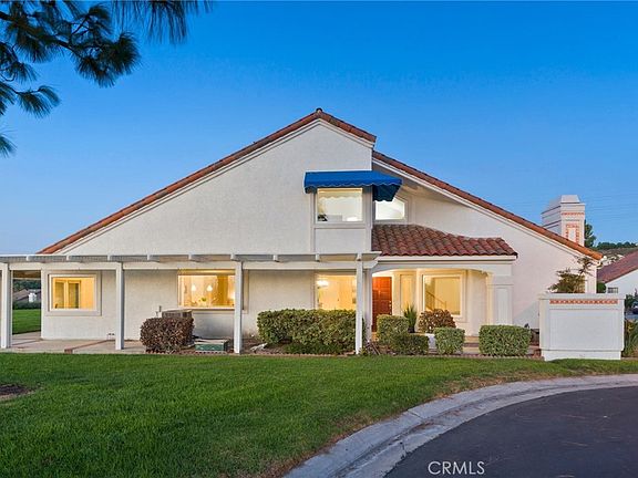 Nestled in one of the most desirable locations in Casta Del Sol, this home offers breathtaking, panoramic mountain, hills, sunset and Lake Mission views from every room and is situated on a quiet cul-de-sac next to a peaceful greenbelt with only 1 neighbor. This highly upgraded, light and bright residence boasts cathedral ceilings, an open floor plan featuring a main floor primary suite, a spacious kitchen, and generous family, dining, and living areas. The chef’s caliber kitchen features stone counters, exquisite cabinetry with soft close drawers, stainless steel appliances including a Thermador cooktop, island, & a picture window framing sunset and lake views. The main floor primary suite is generously sized and is highlighted by a remodeled bath, soaring ceilings and French doors leading out to a private greenbelt and panoramic views beyond. Upstairs, you'll find a spacious, versatile loft/bedroom with its own full bath, mirrored closet, and incredible views. Additional highlights include hardwood and stone flooring, premium vinyl windows and doors, upgraded HVAC system, Pex repipe, recessed lighting throughout, custom window blinds, and a spacious garage with loads of cabinetry and pull-down storage. Experience the sought-after 55+ community lifestyle with access to pools, a gym, recreation and billiard rooms, a library, craft rooms, BBQ areas, fire pits, numerous clubs, and activities, along with the added bonus of Lake Mission Viejo access.