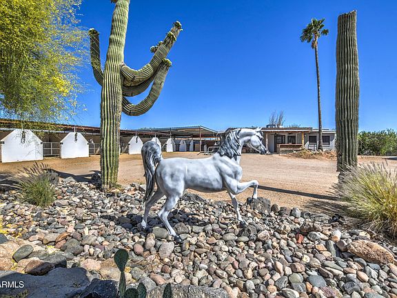 This Fantastic Equine Property is ready for the Big Show! It boasts a Huge barn w 26 Stalls, 4 Stall Grooming Area w Cross Ties, Large Covered Schooling Pen, Breeding Stocks, Breeding Phantom & Spacious Foaling Stall, Second Barn holds Additional 12 stalls. Grounds include 60' Covered Round Pen w Sprinklers, Three 40' Connected Turnouts, 6 Horse Euro-Walker in a Massive 175'x120' Arena, Large Presentation Arena w Seating, Covered Hay Storage and Large Tack Room w A/C. Entrance has Electric Gate w Keypad and the ADU can convey. The Lovely Updated 4 Bedroom Ranch home, almost 4000' one level, is an Open and Airy escape from the Trail. The added Huge Heated Pool, Hot Tub, Playground, Kids' Splash Pad & Owned Solar make this property a special find, recently Bank Appraised for $2.7M.