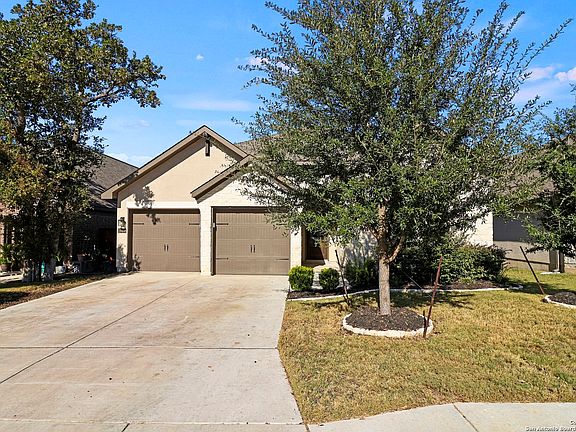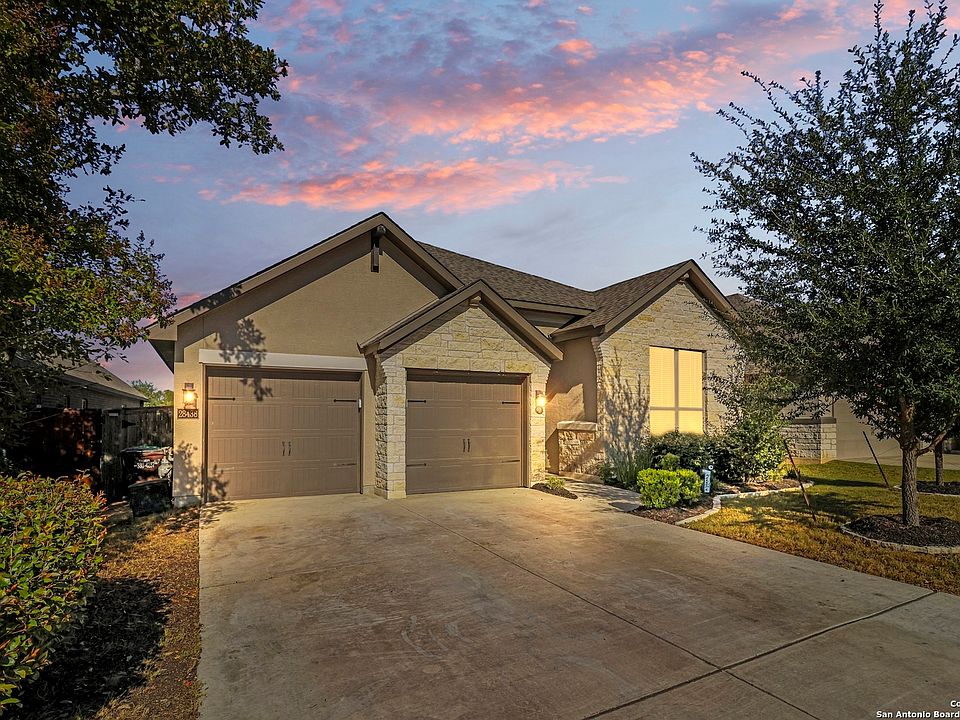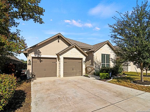 Welcome to your dream home in the desirable Kinder Ranch/Sunday Creek subdivision-a move-in ready, spacious one-story masterpiece offering modern comfort and luxurious design. This stunning 4-bedroom, 3-full-bath property boasts a beautifully curated exterior with stone accents and a cool, contemporary color palette that makes an impressive first impression. Step inside to experience an open-concept layout that blends style and functionality. The chef-inspired kitchen is perfectly appointed for culinary adventures, featuring top-quality finishes, granite countertops, ample cabinetry, and a seamless flow into the expansive living and dining areas. Enjoy unobstructed sight lines and soaring ceilings that amplify natural light while highlighting signature architectural details throughout. Smart features include: Light switches, camera doorbell and Smart door locks. A flexible theater or study space adds versatility to the floorplan, meeting the needs of remote work, movie nights, or quiet reading. The primary suite is thoughtfully tucked away from the other bedrooms to ensure peace and privacy, complete with a comfortable ensuite and spa-like finishes. Secondary bedrooms are well-sized and ideally positioned for family living or hosting guests. Step outdoors to a private backyard oasis featuring a gorgeous Spanish oak and ample room to relax or entertain. Whether you dream of quiet evenings under the shade or lively weekend gatherings, this space delivers. Located just a short walk from the community center, local amenities, and the middle and high schools, this home combines convenience with a tranquil greenbelt setting. Every detail has been crafted with care, ensuring quality, comfort, and a place you'll be proud to call home. Ready to make it yours? Schedule a showing to explore this exceptional property in person!