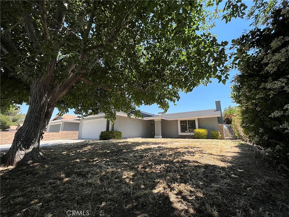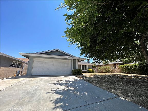 Welcome to this wonderful Palmdale neighborhood that features this spacious listing of an amazing 3 bedroom 2 bathroom home with 1,502 sq ft of living space situated on a 6,388 sq ft lot. As you walk into this home you are greeted by a large living room with herringbone pattern tile flooring, high ceilings and a gas fireplace ready to be sat around during the fast approaching holidays. The kitchen with an in Dining area is bright with newer quartz countertops and some stainless steel appliances. High ceilings and a glass sliding door that leads to the huge patio make it great for entertaining inside and out. The primary bedroom is spacious with engineered wood flooring, its own private bathroom and access to the back yard via a patio door slider. The other 2 spacious bedrooms with new laminate flooring are down the hall and across from the hallway bathroom that has some updates and tile work. The entire home has been recently painted inside and out with a newer roof. Laundry area is inside and before the garage entrance with some closet and cabinets space. 2 car spacious garage is drywalled with the water heater located within, some cabinets and has an automatic garage door opener. Fully gated property offers so much and is a must see to appreciate.