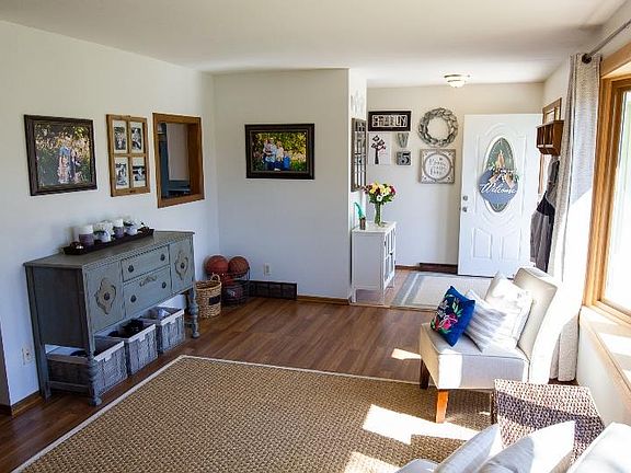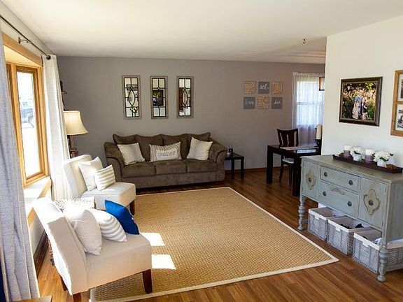 Neat, clean and updated 4 bedroom ranch home. Tiled, front entrance leads to light filled living room, opening to dining room/area. Open concept kitchen (new counter/backsplash) offers greatfunction/space, including snack bar. Adjacent family room with gas fireplace overlooks deck and large back yard. Three bedrooms on main level with full bath (tiled tub surround) and half bath. The lowerlevel is finished with a combination of family room space, additional rec space, and 4th bedroom (dbl closets). 2 car attached garage and storage shed for outdoor storage. Located on a cul-de-sac.