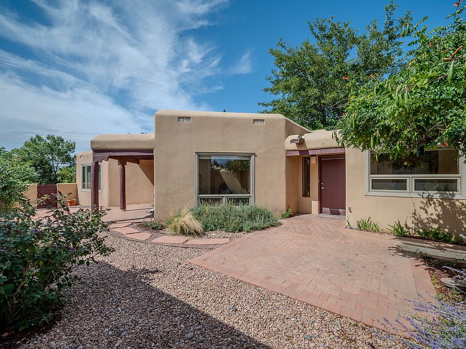 One-of-a-kind timelessly updated custom home in one of Santa Fe's most endearing neighborhoods. Situated in a private cul-de-sac, this residence offers a tranquil setting away from traffic noise and is conveniently located near tree lined walking trails and within easy walking distance to shops and amenities. Light filled with 10 sky lights and completely updated and maintained makes this home move-in ready. The amenities include large windows and kiva fireplace in the living room, foam roof, Pella wood frame windows and doors, custom kitchen cabinets, granite countertops, stainless steel appliances, and remodeled bathrooms. The oversized garage features multiple large storage closets to please collectors of tools, seasonal decor and cloths, and projects. This is a must see. Easy to show.