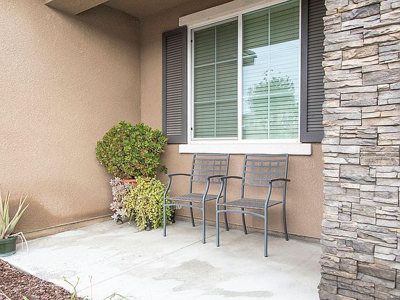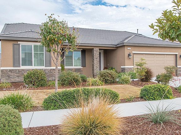 Beautiful single-story home in SE Visalia's Chelsea Place neighborhood! Located on a quiet cul-de-sac, this home features: security doors on front and side door, landscaped front/back yard, blinds, covered front porch, covered back patio, 12'x10' Tuff Shed, additional concrete work all the way around the home, and a tile roof. The interior of the property includes: wood-like tile flooring, Master suite with tub, shower, walk-in closet, and dual vanities, granite counter tops in kitchen, large kitchen counter with barstool overhang, stainless Whirlpool appliances, and a finished 2-car garage w/ 50-gallon water heater.