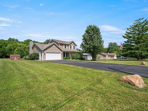 If you need space, this is the property for you! The spacious home has 1875 square feet of living space that includes 2 living spaces, Kitchen with all of the appliances, a formal dining area, 3 spacious bedrooms, and 2.5 baths. There is spacious storage in the 2 car attached garage, the 2 car detached garage, and the 12x16 storage shed. All of this is on a spacious lot with 1.5 acres that includes a fire pit and backs up to a creek and the Nickel Plate Trail. There have been multiple updates in the last 5-6 years to include roof, flooring, heat pump, water softener, and water pressure tank.