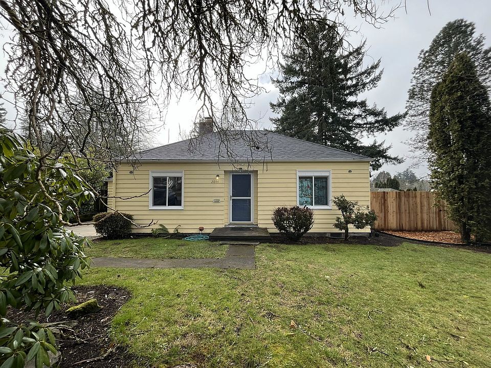 This charming two-bedroom, one-bathroom home offers 812 square feet of thoughtfully designed living space, set back from the street with a long driveway leading to a one-car garage. The expansive front yard features a lush grass lawn and a defined pathway guiding you to the welcoming front entrance, creating excellent curb appeal. Inside, the living room is bright and inviting, highlighted by hardwood flooring, oversized windows on two walls, and a built-in fireplace that anchors the space. The open layout provides ample room for a variety of furniture arrangements, making it ideal for both everyday living and entertaining. Just down the hall, a cozy dining area features French doors that open directly to the backyard, allowing natural light to flow into the space and providing easy indoor-outdoor access. Adjacent to the dining area, the kitchen is functional and full of character with white cabinetry, white tile countertops accented by black diamond inlays, and tile flooring. White appliances include a refrigerator, electric oven, and dishwasher, complemented by a stainless steel sink positioned beneath a window. Next to the kitchen is a dedicated laundry room equipped with a full-size washer and dryer, along with convenient shelving above for additional storage. Both bedrooms are located down the hallway for added privacy. The first bedroom features hardwood flooring, a corner window configuration overlooking the backyard, and a step-in closet. The second bedroom is more spacious, offering hardwood flooring, windows on two exterior walls, and an equally generous step-in closet. Between the bedrooms, the full bathroom includes a pedestal sink, a tub and shower combination with gray tile surround, and extra linen storage. Additional built-in storage is conveniently located between the bedrooms as well. The backyard is a true retreat, showcasing a large grass lawn, a bark dust walking path that wraps around the home, mature bushes along the fence line, and a fully fenced perimeterperfect for relaxing, gardening, or outdoor enjoyment. This home is ideally located just minutes from the heart of Multnomah Village, making its walkable charm, local shops, and vibrant dining scene a central part of everyday living. The village offers a mix of beloved neighborhood favorites including Bambuza Vietnam Kitchen, El Gallo Taqueria, Baldwin Ice Cream, along with locally owned boutiques such as Village Merchants. Specialty grocery shopping is conveniently nearby with Market of Choice, while everyday amenities and services are close at hand. Outdoor recreation is easily accessible with nearby green spaces including Gabriel Park, Tryon Creek State Natural Area, and Multnomah Park, offering trails, open lawns, and year-round activities. With easy access to Hillsdale, downtown Portland, and major transit routes, this location offers a true Multnomah Village lifestyle with the convenience of city living close by. **Open Application Period (1/5/26)** Call or Text Our Leasing Agent to schedule a showing! Visit our website to apply and view other homes we have available! Do you need property management services? Maximize your income and cut your costs!