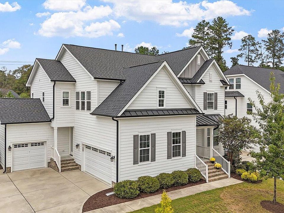 This beautifully designed 3 car garage (w/EV charger) Apex home offers the perfect blend of craftsmanship and convenience with over 3,100 sq ft of thoughtfully planned living space. Every detail reflects quality and care—from coffered ceilings in the family room and office, the tray ceiling in the primary bedroom, the tankless water heater and 30-year architectural roof to the remote-controlled window shades and soft close cabinets that add both style and ease to everyday living. Entertain effortlessly in the gourmet kitchen, featuring a butler's pantry, premium finishes, and seamless flow into the open living area. A first-floor guest suite provides comfort and privacy for visiting family or friends. Upstairs, spacious bedrooms and a versatile bonus room offer room to relax, while the 3rd bay garage adds plenty of space for storage, hobbies, or even a home gym. Step outside and enjoy your proximity to the neighborhood pool and greenway/American Tobacco Trail access within the neighborhood—perfect for morning jogs or evening walks under the trees. BE SURE TO CHECK OUT THE VIRTUAL TOUR TOO! Under 15 min to Lenovo, Cisco, NetApp, IBM, Fidelity, Quintiles, etc. Only about 20 to GSK/RTP. 25 min to Duke via 751 and NCSU via US1 and under 30 to UNC. Ideally situated with respect to highways to make everything relatively close Set in one of Apex's most sought-after communities, 2844 Spring Shade Road pairs location, luxury, and lifestyle in one exceptional property.