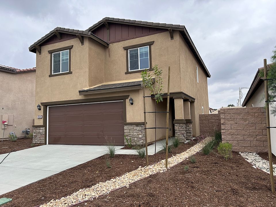 Bright and beautiful, this single-family house is located in a quiet, newly developed community, close to schools and Menifee Town Center. Enjoy mountain views from each of your bedrooms and the backyard. This lovely home features three generously sized bedrooms and 2.5 bathrooms. Benefit from the convenience of an attached two-car garage with a driveway. The house boasts granite countertops, stainless steel appliances in the kitchen, and recessed lighting throughout. The solar system helps you save money and is environmentally friendly. Smart home technology allows you to control various aspects of the house from your phone, including HVAC, the garage door, and the front door. The expansive backyard is perfect for entertaining family and friends. Be active in the newly opened community park, playgrounds for kids, BBQ for friends, hoops to shoot, or simply open space to relax.
