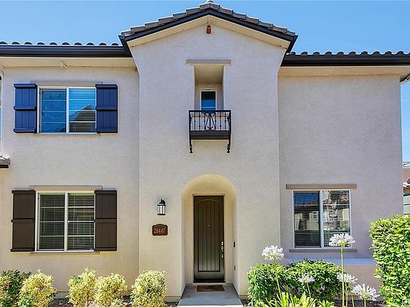 Great Opportunity for this Wonderful 2 bedroom, 2.5 bath Townhome in the highly sought after Mariposa Community! Great floorplan features 2 master suites upstairs each with their own private bath and a nice size private yard for BBQ's or relaxing . This popular floorplan is highly desirable and currently the only one for sale! Upon entering this move in ready unit you will see the spacious living room with fireplace, designer kitchen with granite counters,dark wood cabinets and eat in area and laundry room between the kitchen and garage. Custom wood flooring throughout the living room, dining area and kitchen. The master suite has a walk in closet, double sinks and separate shower area. Parking features direct access to a one car garage and one more additional covered parking spot. Mariposa has a wonderful resort like Pool and Spa area and a clubhouse. Other features to the pool and spa area are built in BBQ's and lounge chairs perfect for enjoying those beautiful summer days! There's also a kid's Tot Lot as well. HOA features ALL this and is one of the lowest HOA's in the entire Santa Clarita Valley! Additionally there is NO MELLO ROOS...WOW!! Property is located near award winning schools, a brand new shopping center that is set to open soon, shopping, dining and entertainment. This one won't last!!