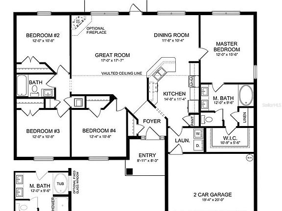 Split-bedroom layoutGranite countertopsIndoor laundry roomPrivate master suiteSprawling great roomVaulted ceilingsDecorative baseboards